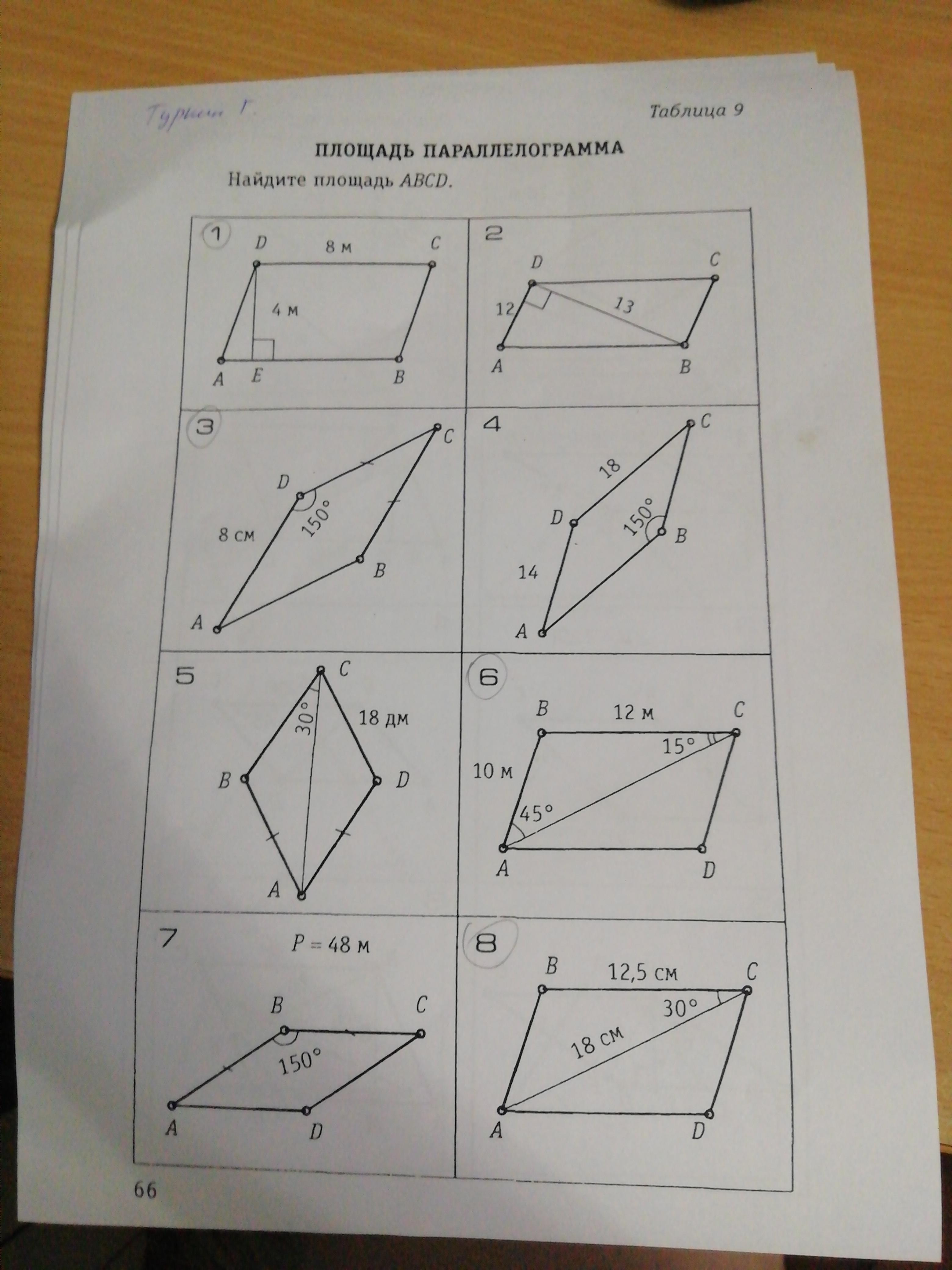 8.AB= 18/2= 9, (9*12, 5) *2= 112,5*2= 225