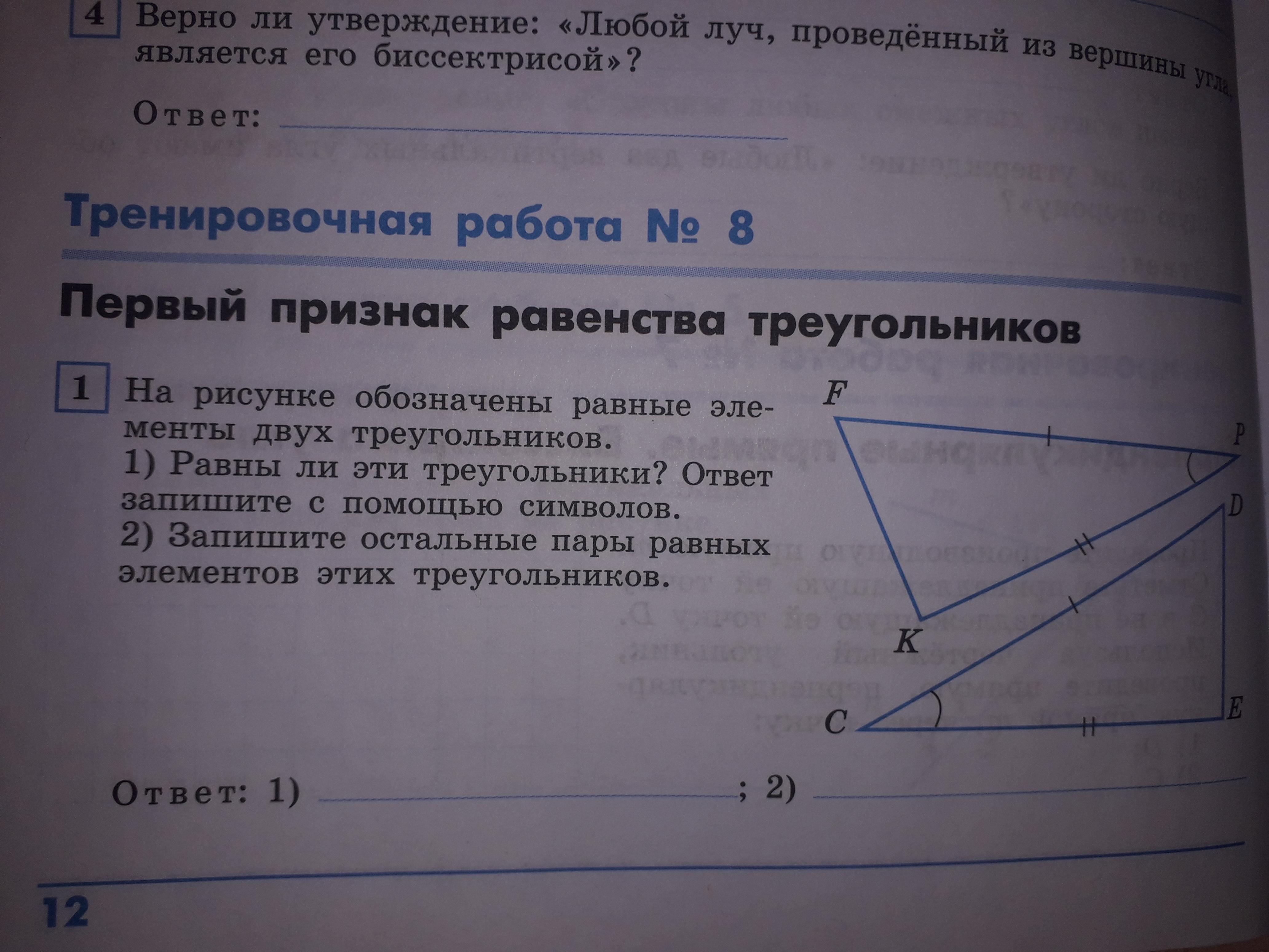 Ответ:1) треугольники равны по признаку« если у треуг-ов соответственно равны угол и заключающие его стороны, то треугольники равны»
