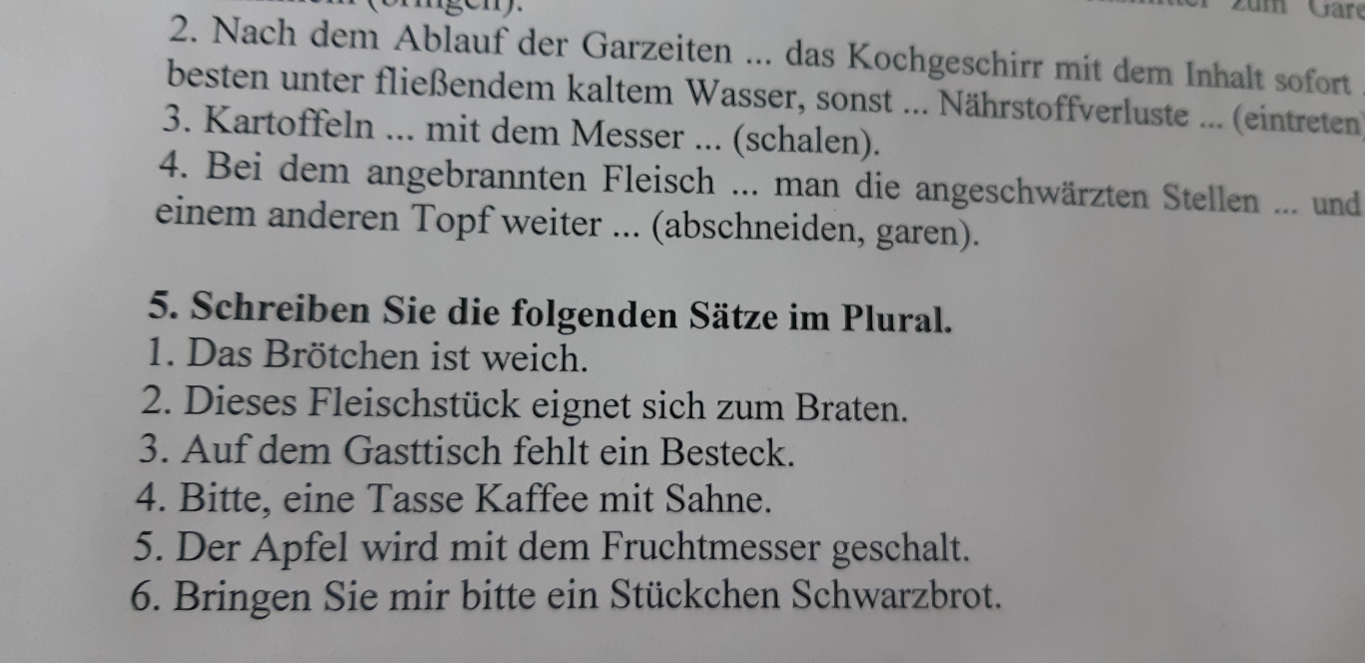 6. Bringen Sie mir bitte Stückchen Schwarzbrot.