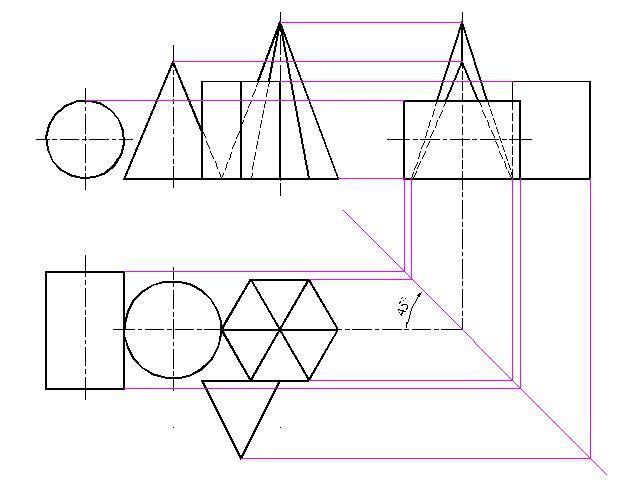 На третьем чертеже цветными линиями показала построение третьего вида.