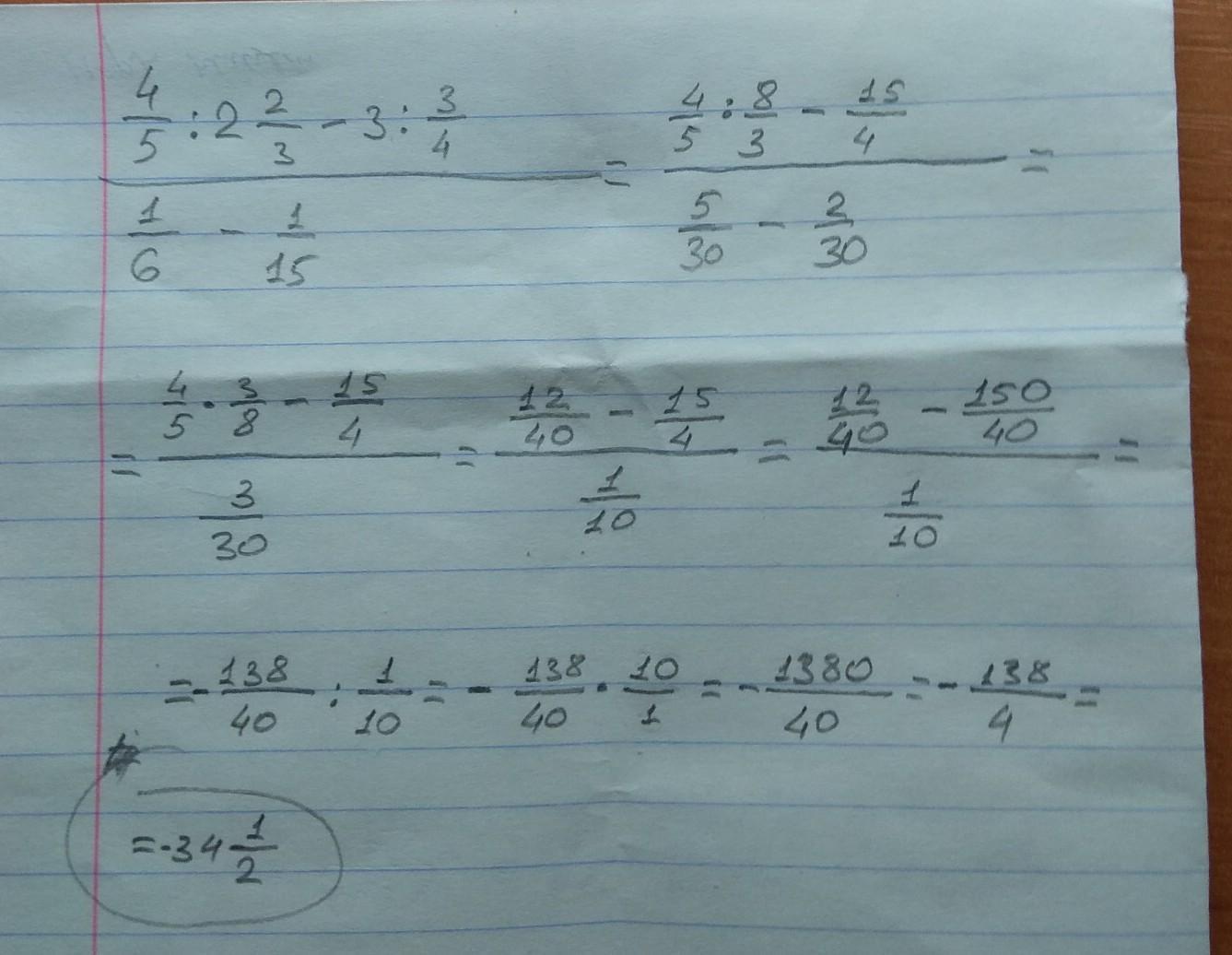 4/5 : 2 2/3 - 3 : 3/4 : 1/6 - 1/15