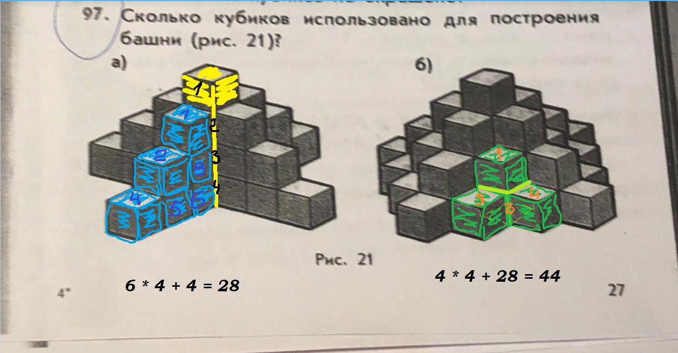 Даю 60 баллов!!! Срочно!!! Сколько кубиков использованному для построения этой башни? (Ответ под а и под б)
