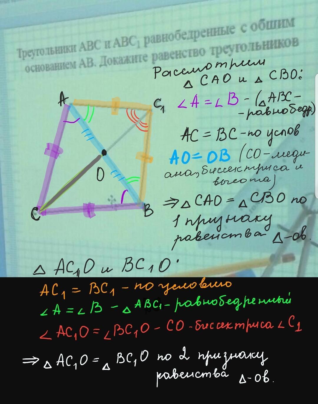 Высота равнобедренного треугольника, проведенная к его основанию ,является также его биссектрисой и медианой.
