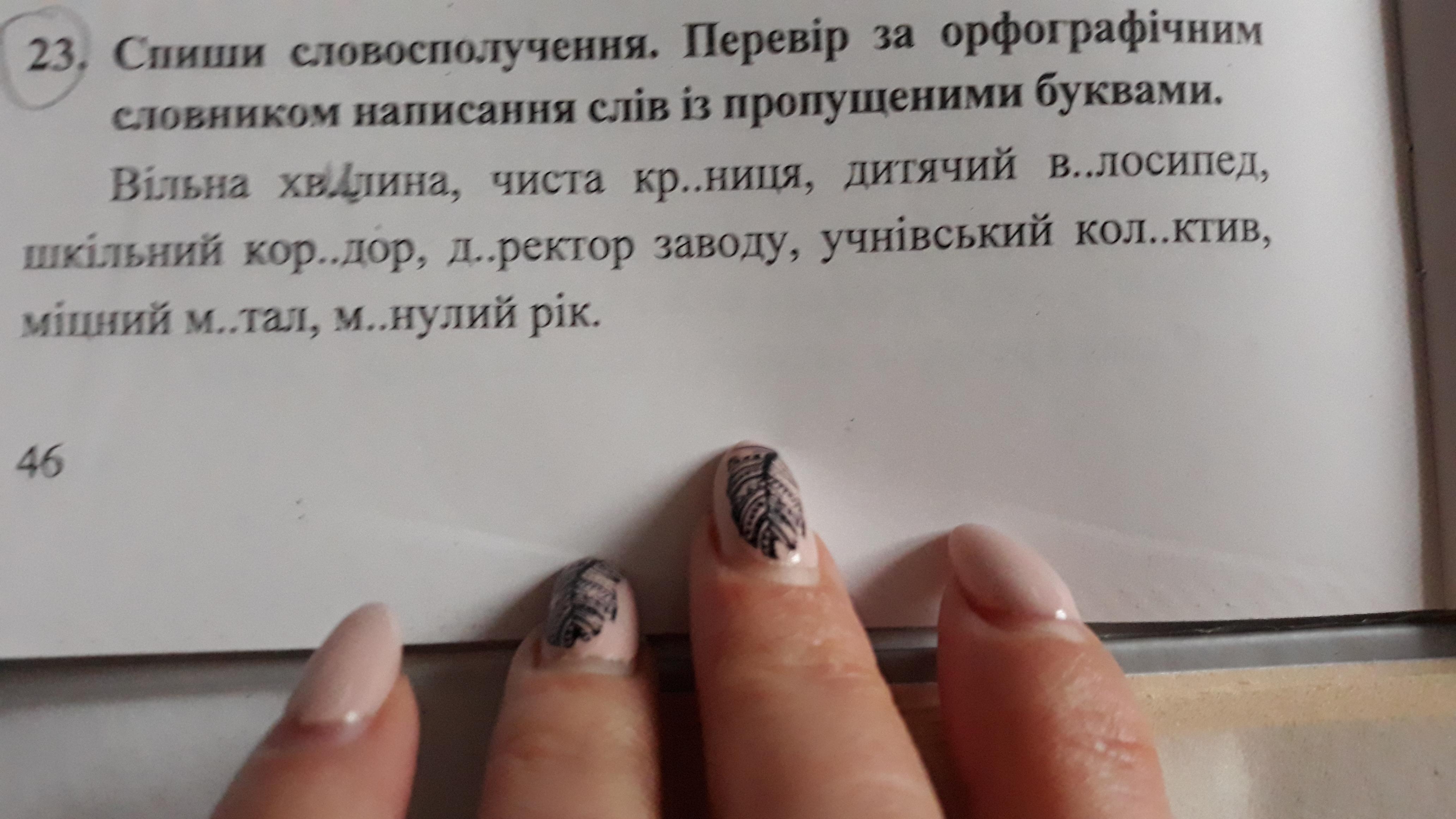 Вільна хвилина,чиста криниця,дитячий велосипед,шкільний коридор,директор заводу,учнівський колектив, міцний метал,минулий рік. ПЕРЕВІРЕНО!)