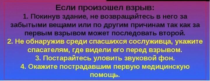 Напишите правила поведения человека,если произошёл взрыв в жилом доме.