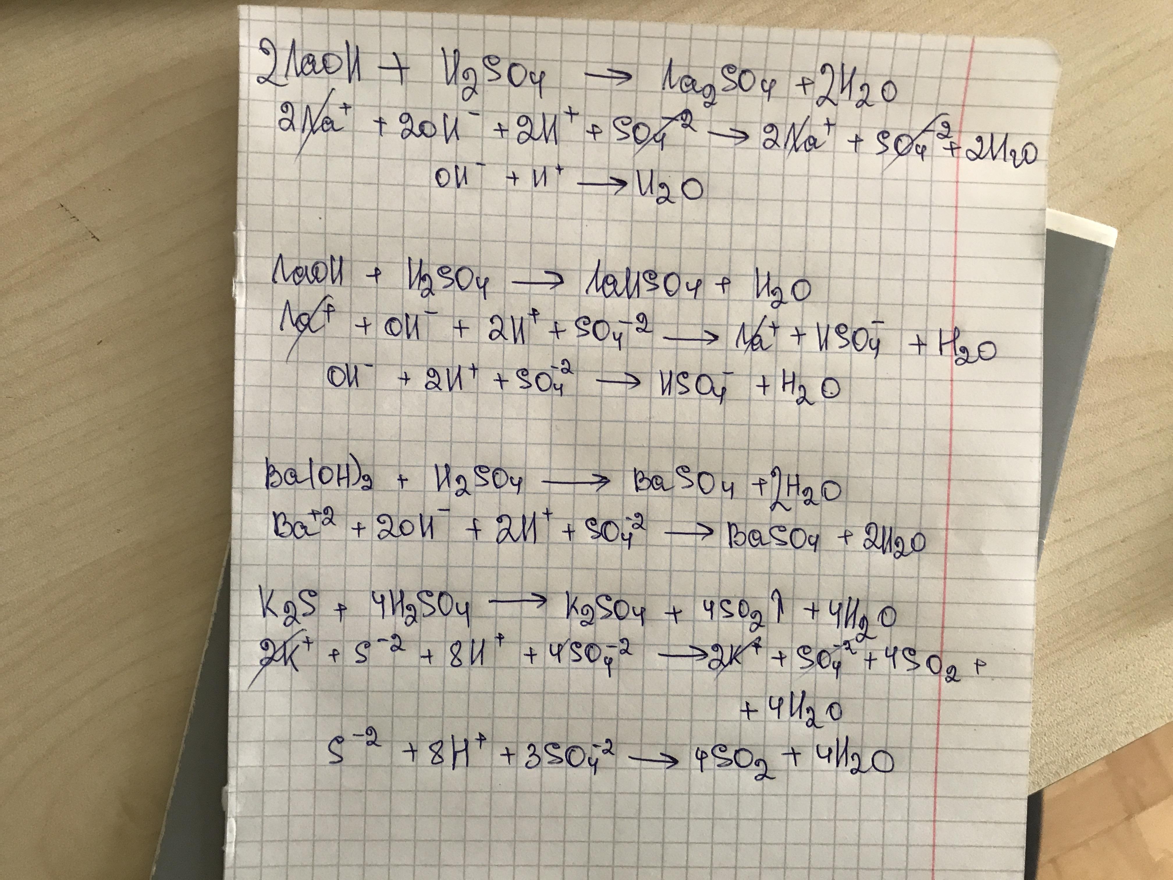 реакций между серной кислотой и растворами веществ: K2S, NaOH, Ba(OH)2