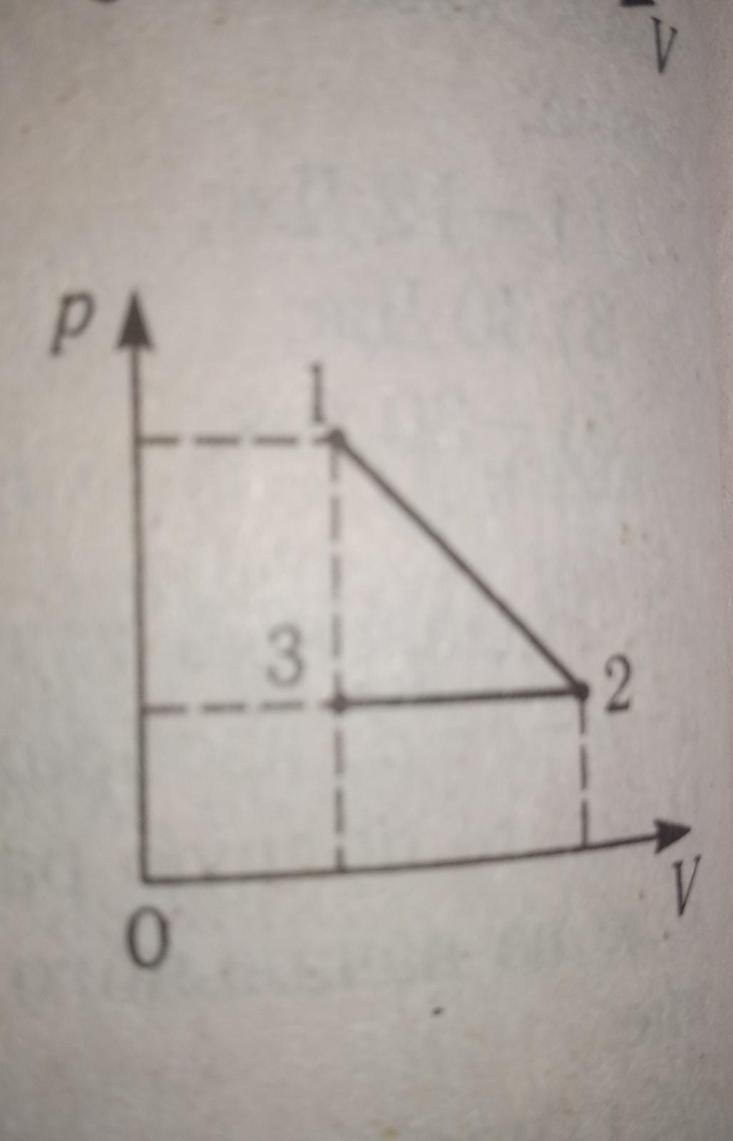 На рисунке приведён график изменения состояния идеального газа. Известно, что температура газа в состоянии 1 и 2 одинакова ,а объёма газа в состоянии 2 в два раза больше, чем в состоянии 1. Отношение работ А12 / А23 равно:
