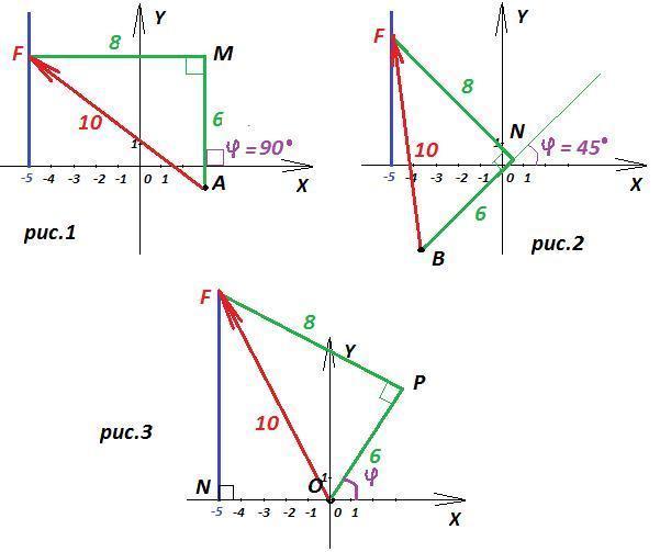 Пусть ковбой начинает свой путь из точки начала координат О(0;0) - рис.3. Проскакав OP=6 км под углом φ к оси x, ковбой повернул налево под прямым углом в точке P и проскакал ещё PF=8 км.