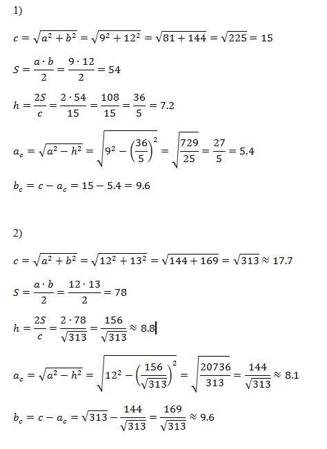 1) с=15, h=7.2, ac=5.4, bc=9.6