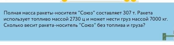 Ответ: Ракета-носитель "Союз" без топлива и груза весит 27000 кг или 270 центнер