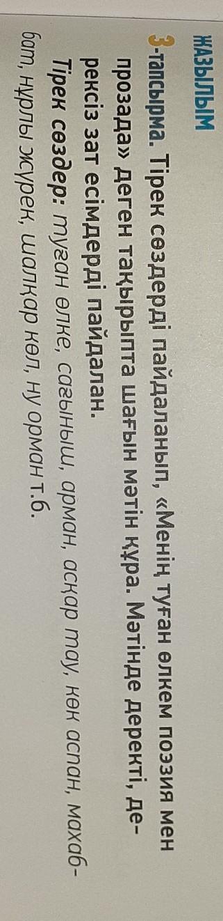 - Əр кімнің өз туған өлкесі болады.Туған өлке деген не?Ол асқар тау,көк аспан,еркіндік,шалқар көл,ну орман жəнеде басқалары.Егер сіз басқа жерге барсанғыз,Өз туған өлкеңізге деген сағыныш пайба болады.Туған жер бізге өз мазаббатын берді.Өз елінде болсаң,одан басқа арман жоқ шығар иə.