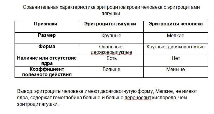 Табл.1.Сравнительная характеристика эритроцитов крови человека,с эритритроцитами лягушки.