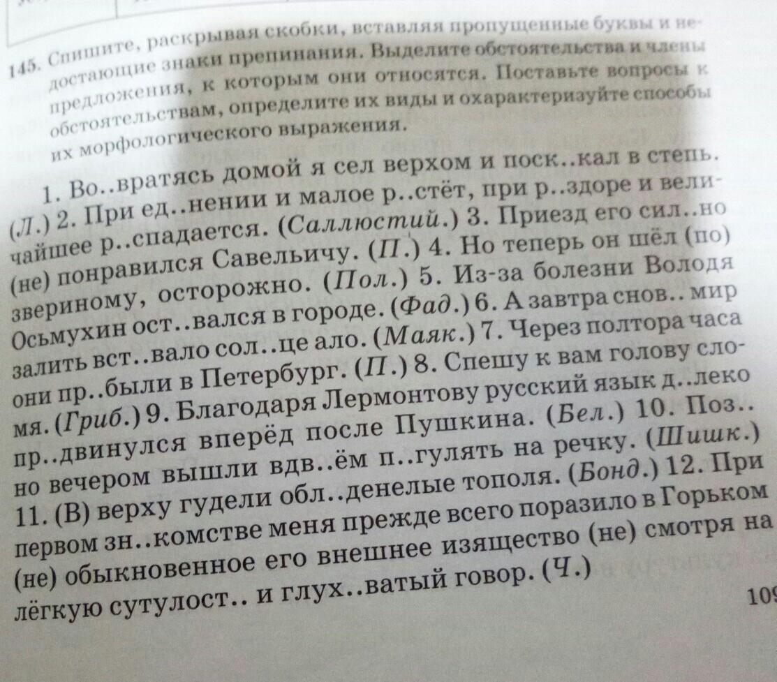 Спишите,раскрывая скобки, вставляя пропущенные буквы и недостающие знаки препинания. Выделите обстоятельства и члены предложения, к которым они относятся. Поставьте вопросы к обстоятельствам, определите их виды и охарактезируйте способы их морфологического выражения