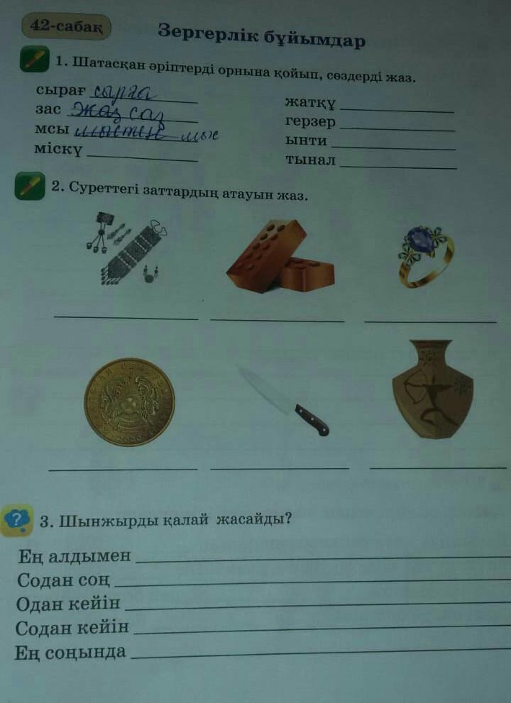Ответ:1күміс 2құжат 3зергер 4 тиын 5латын