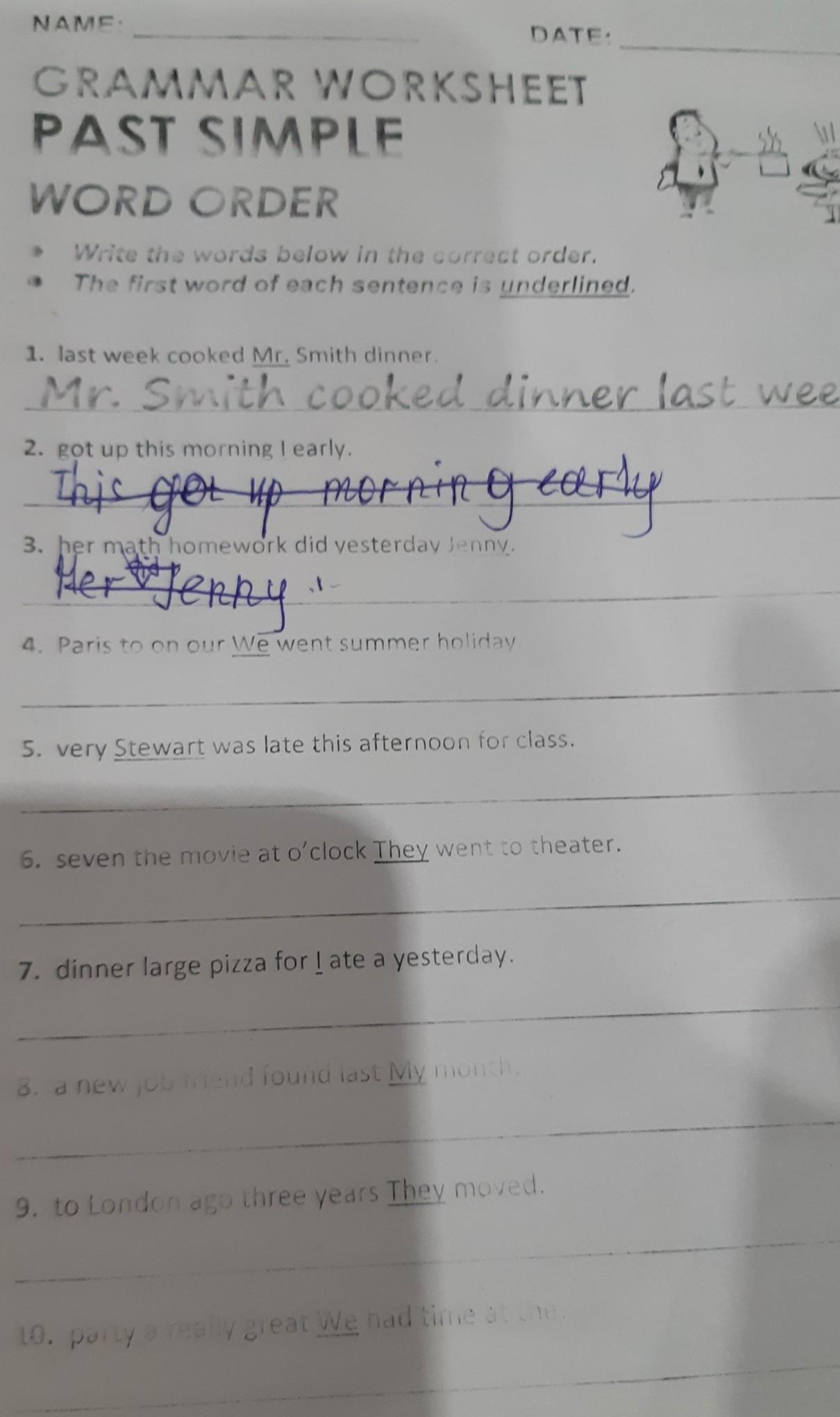 3. Jenny did her math homework yesterday.. 4. We went to Paris on our holiday.
