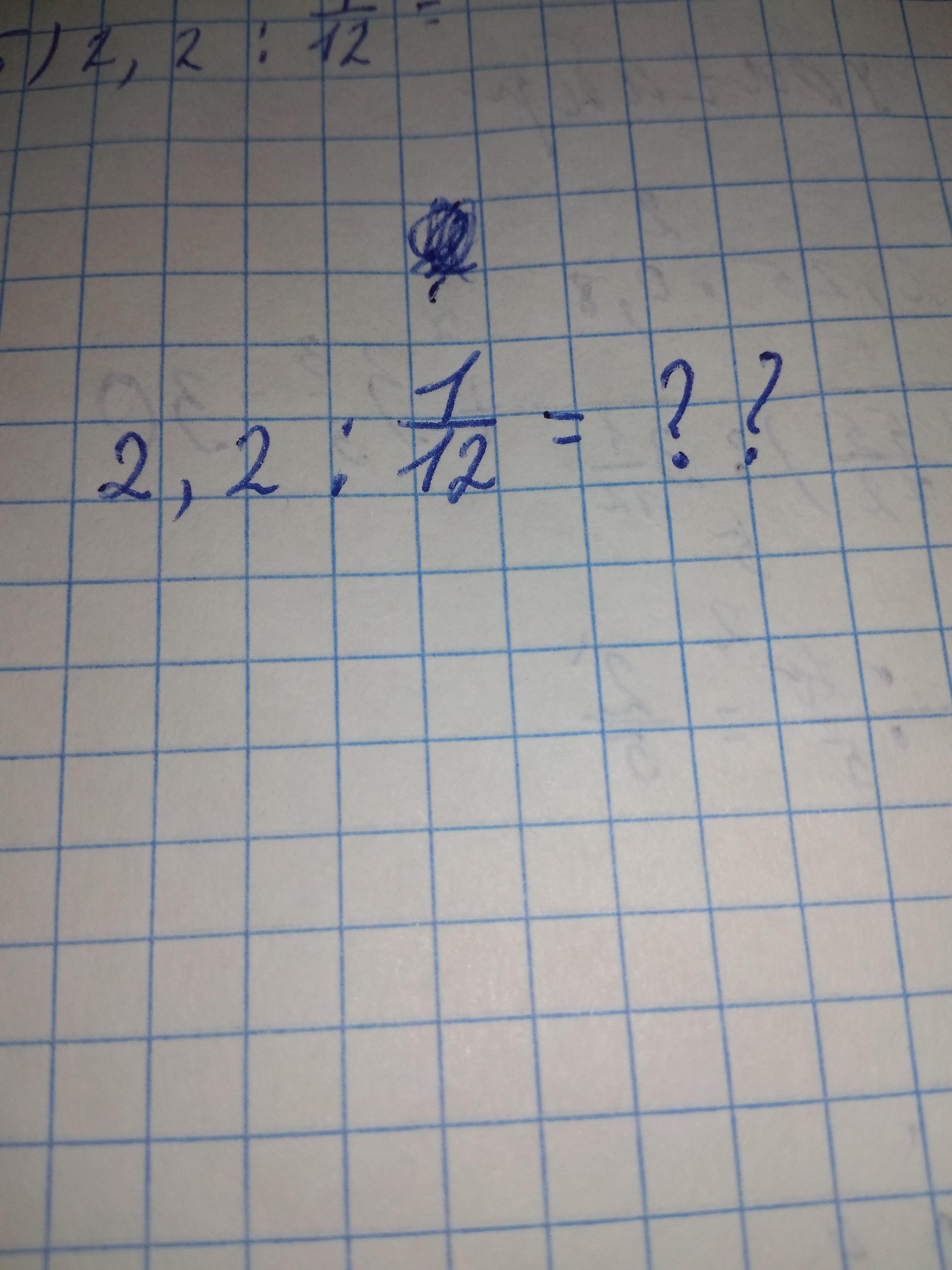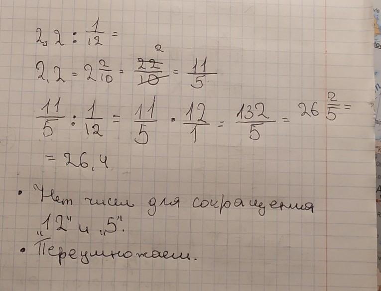 2,2 ÷1/12=22/10 •12/1=11/5 •12=(11•12)/5=132/5=26 2/5=26,4