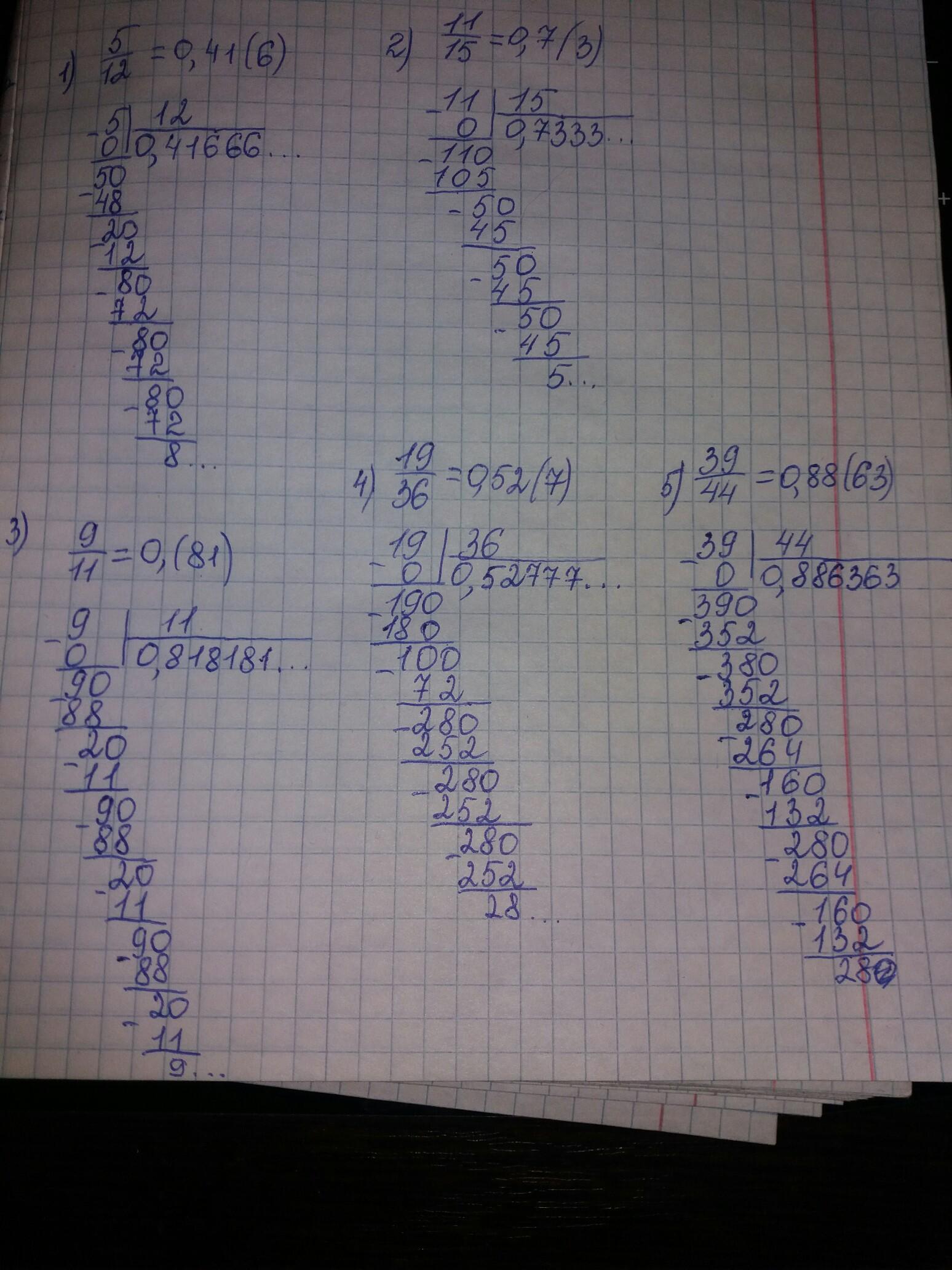 Необходимо разделить и понять какие цифры будут повторяться. Они и будут периодом. Период записываем в скобках.
