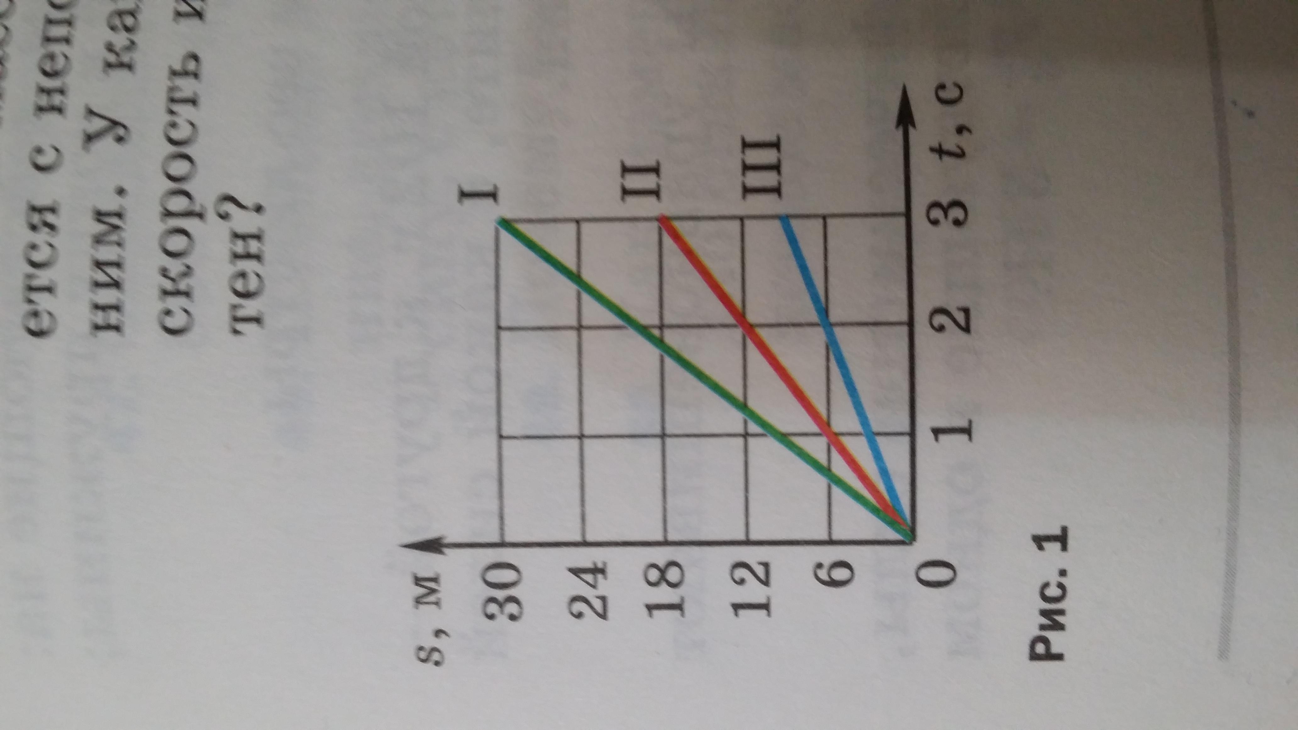 Физика,1 7 класс,по графику зависимости пути от времени (рис.1) Определите скорость движения 3 тел.