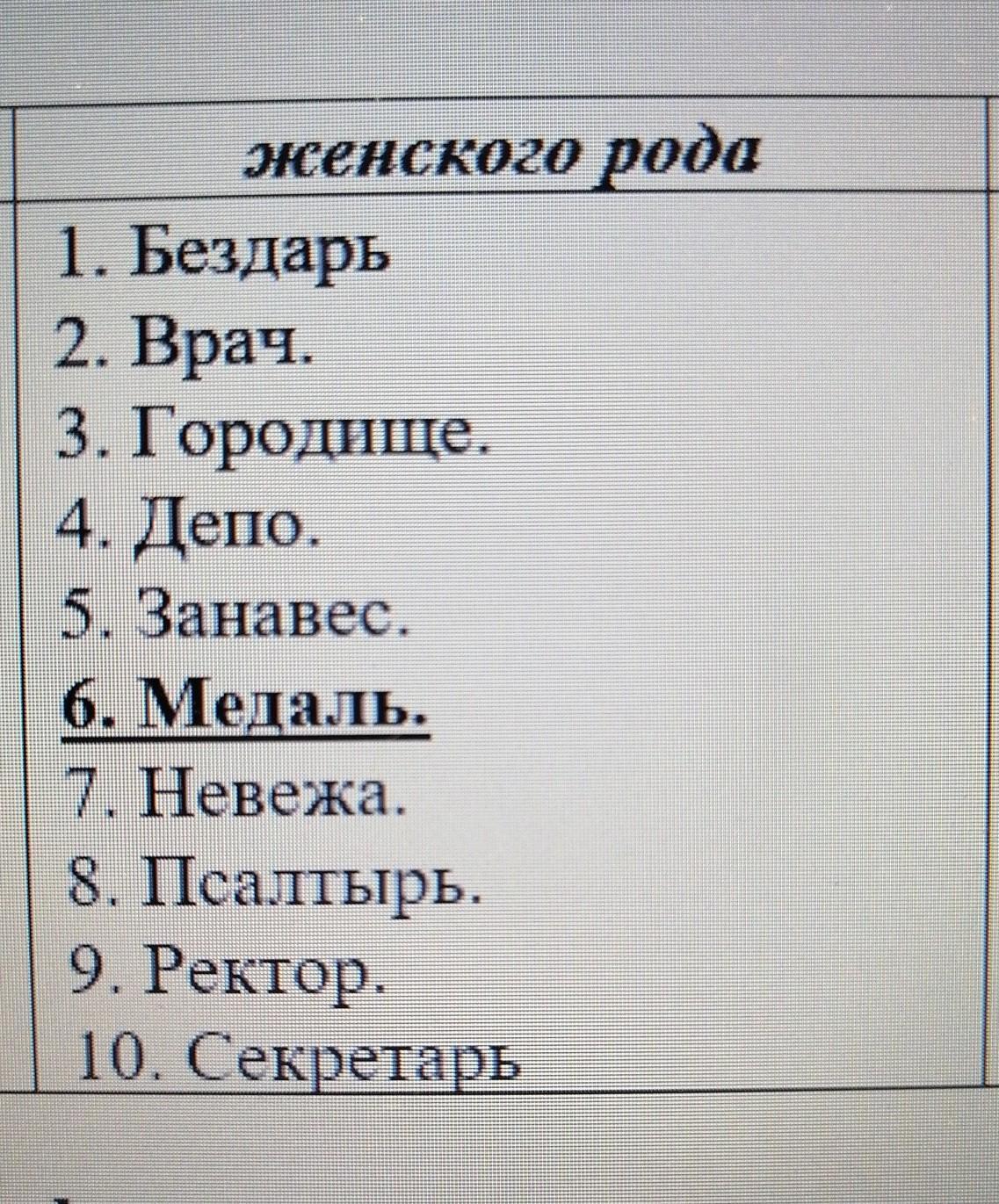 Медаль(6) - это единственное существительное ж.р..