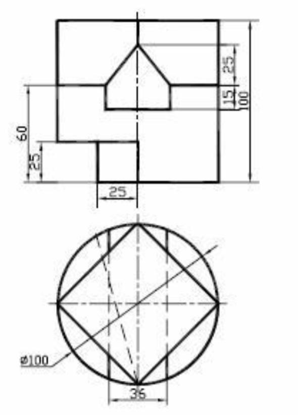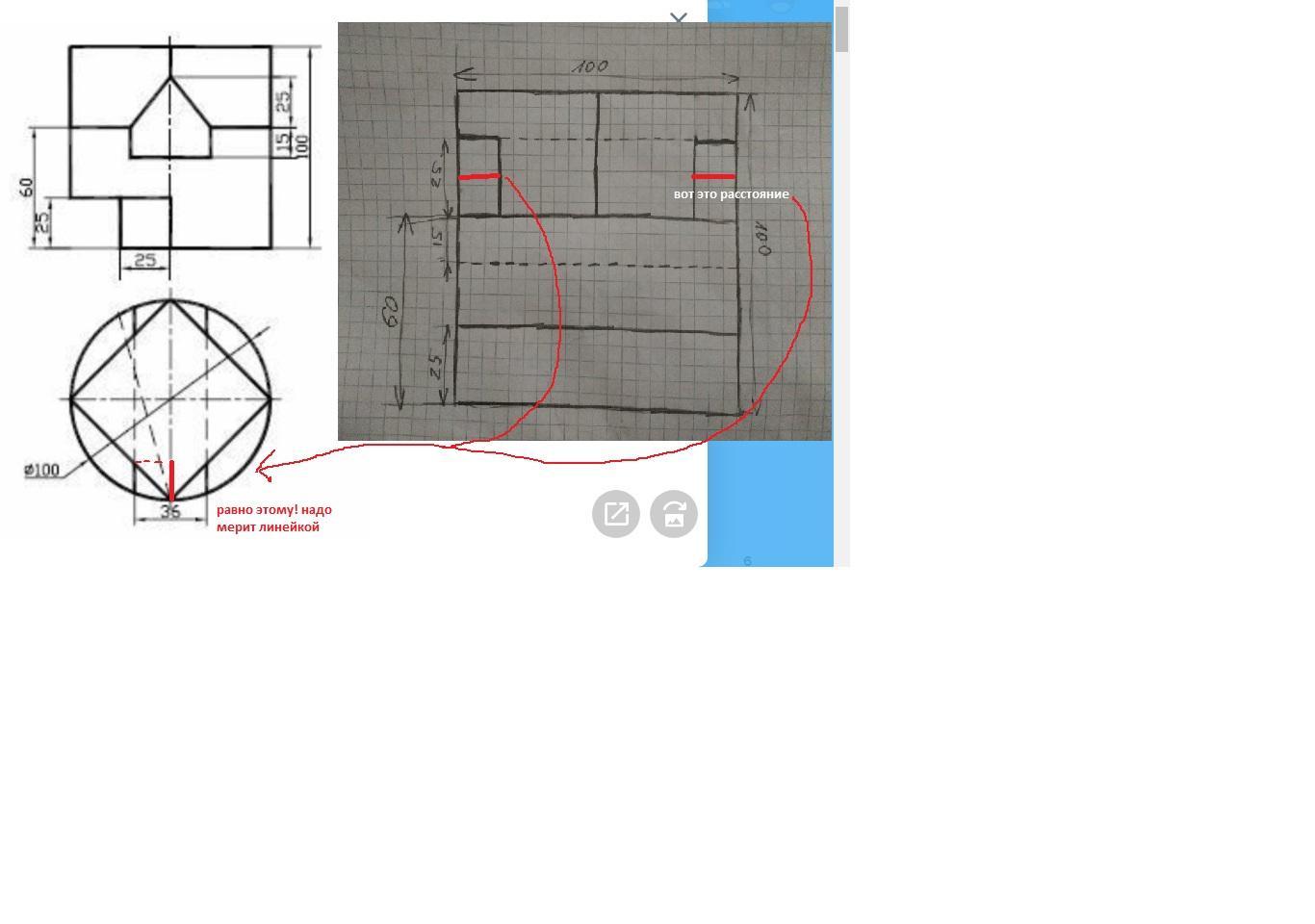 Помогите построить 3-ий вид по двум заданным и нанести размеры!