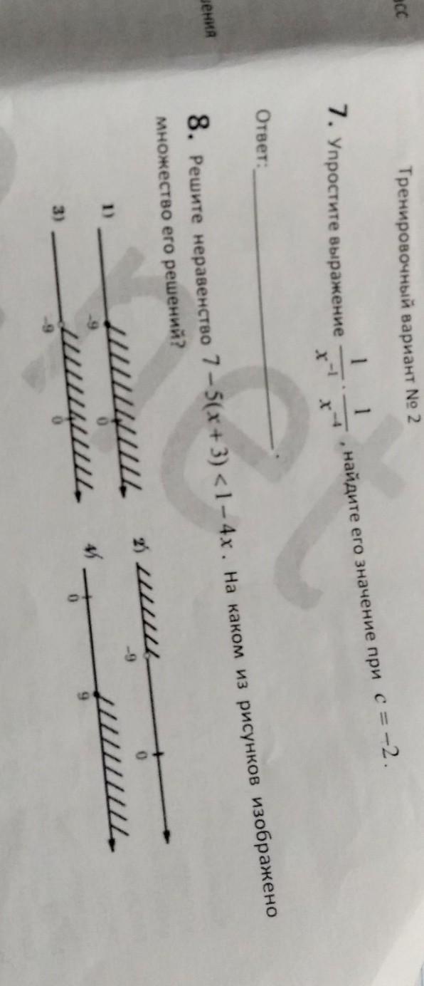 х≥-9 неравенство перевернулось т.к. делили на (-1) Ответ 3. т.к. неравенство строгое, точка не закрашенная