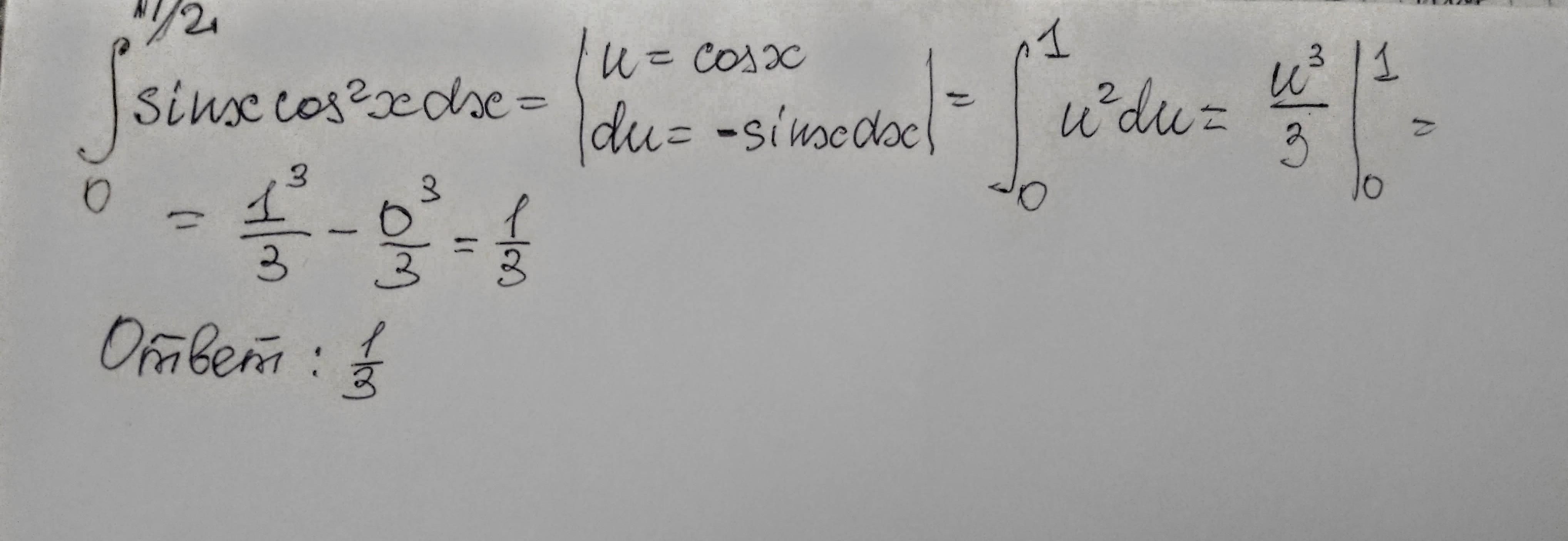 там где появилось u, пределы от 1 до нуля. и ответ тот же. Две последние строчки напрасны.