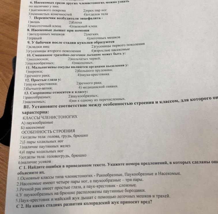 2- не верно, насекомые имеют три пары ходильных ног( шестиногие) , а а паукообразные имеют четыре пары ходильных ног