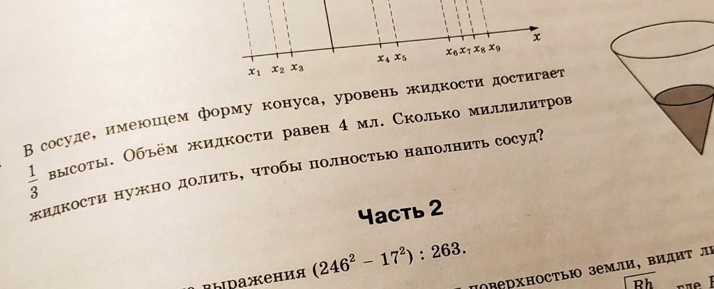1) 4 : 1/3 = 4 * 3 = 12 мл это полный сосуд