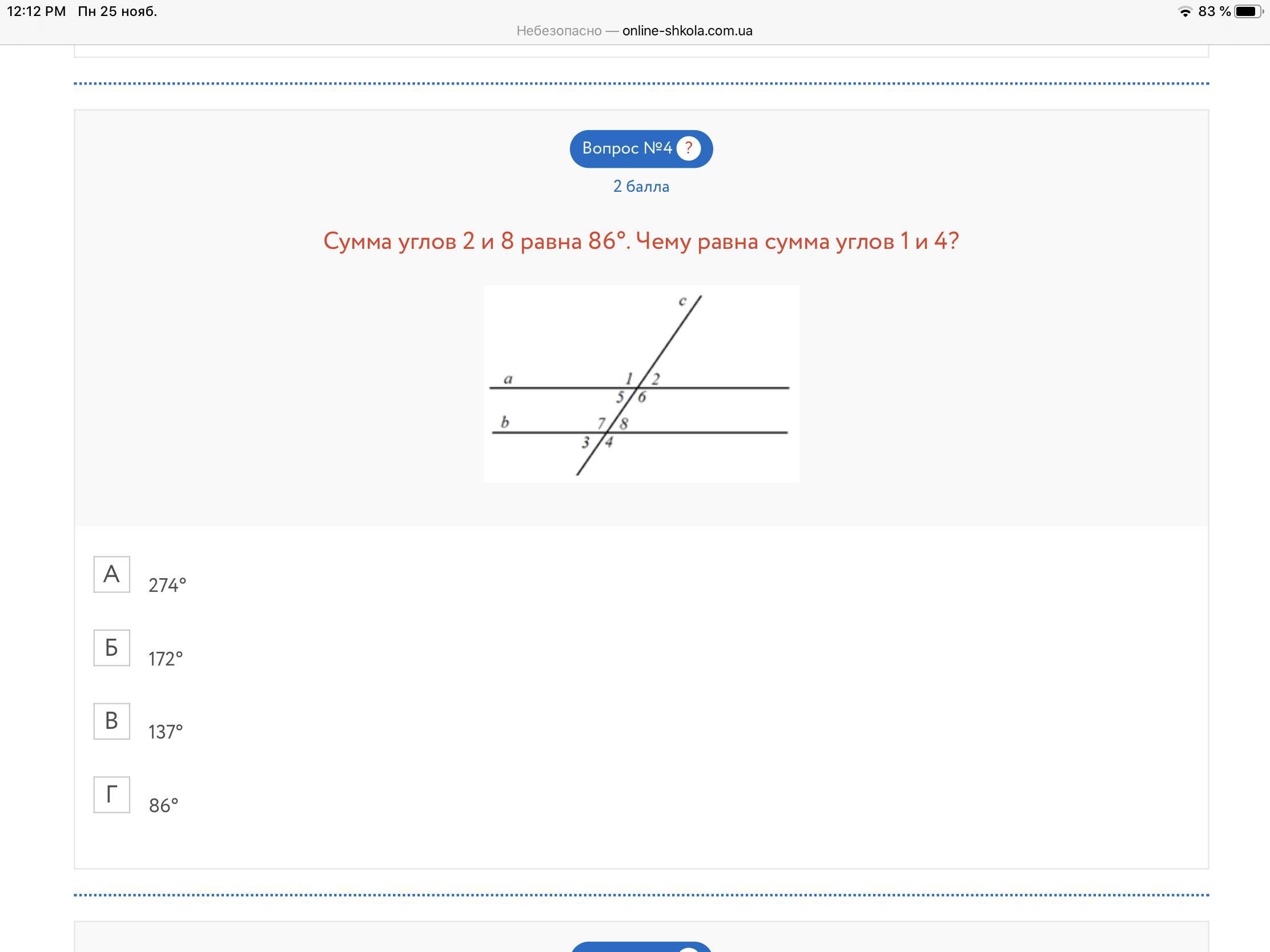 (∠2+∠1)+(∠4+∠8)=360° 2 пары смежных углов
