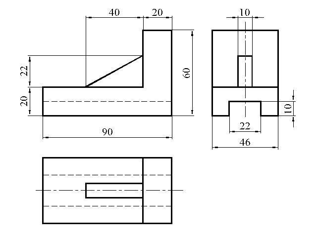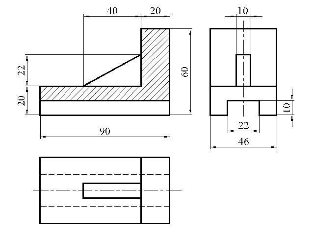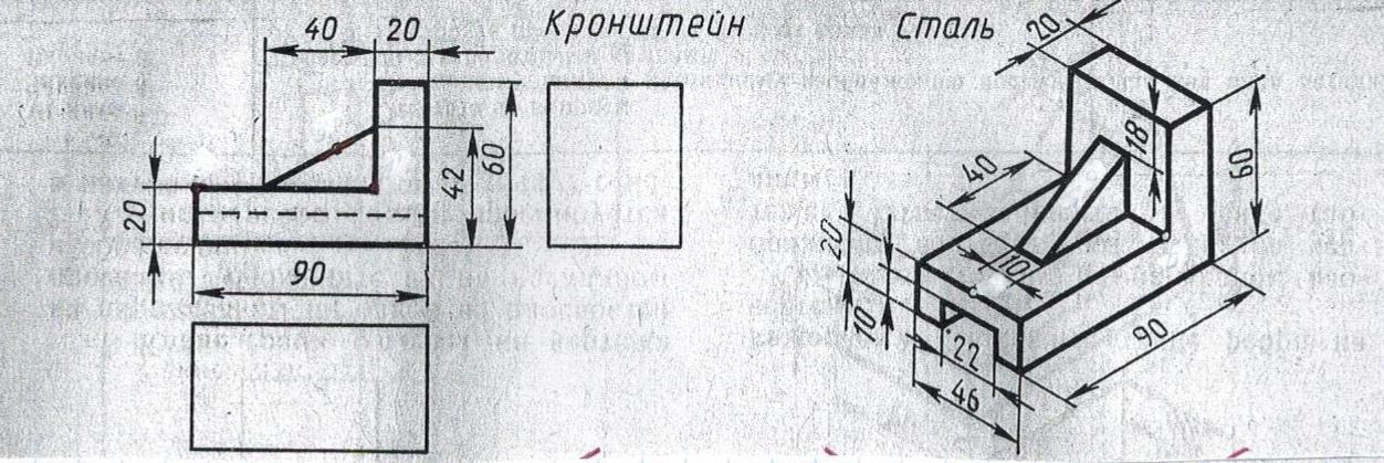 По данному виду и наглядному изображению постройте два вида детали, очерченных габаритными рамками и выполните разрез.