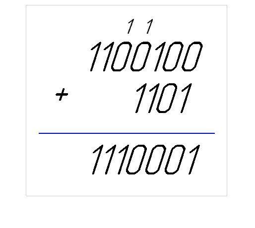 1100100₂+1101₂=1110001₂=113₁₀=161₈