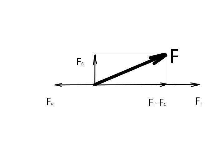 F=√(Fт-Fc)²+Fб²=√(13000-9000)²+3000²=√4000²+3000²=5000 Н