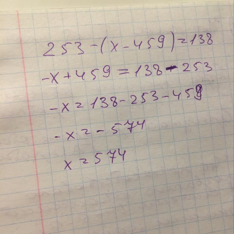 Раскроем скобки : 253- x+459=138