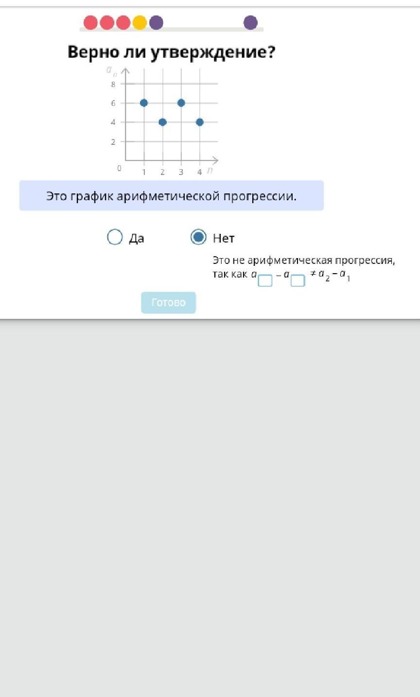 Да, это является графиком арифметической прогрессии, т.к. d=4-6=-2