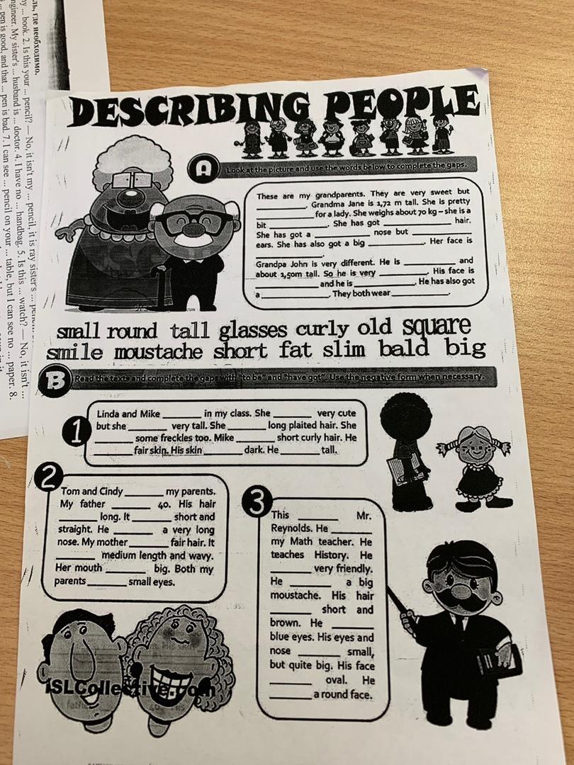 1. Linda and Mike are in my class. She has is very cute but she is very tall. She has got long plaited. She has some freckles too. Mike has got short curly hair. He has got fair skin. His skin is dark. Hi is tall.