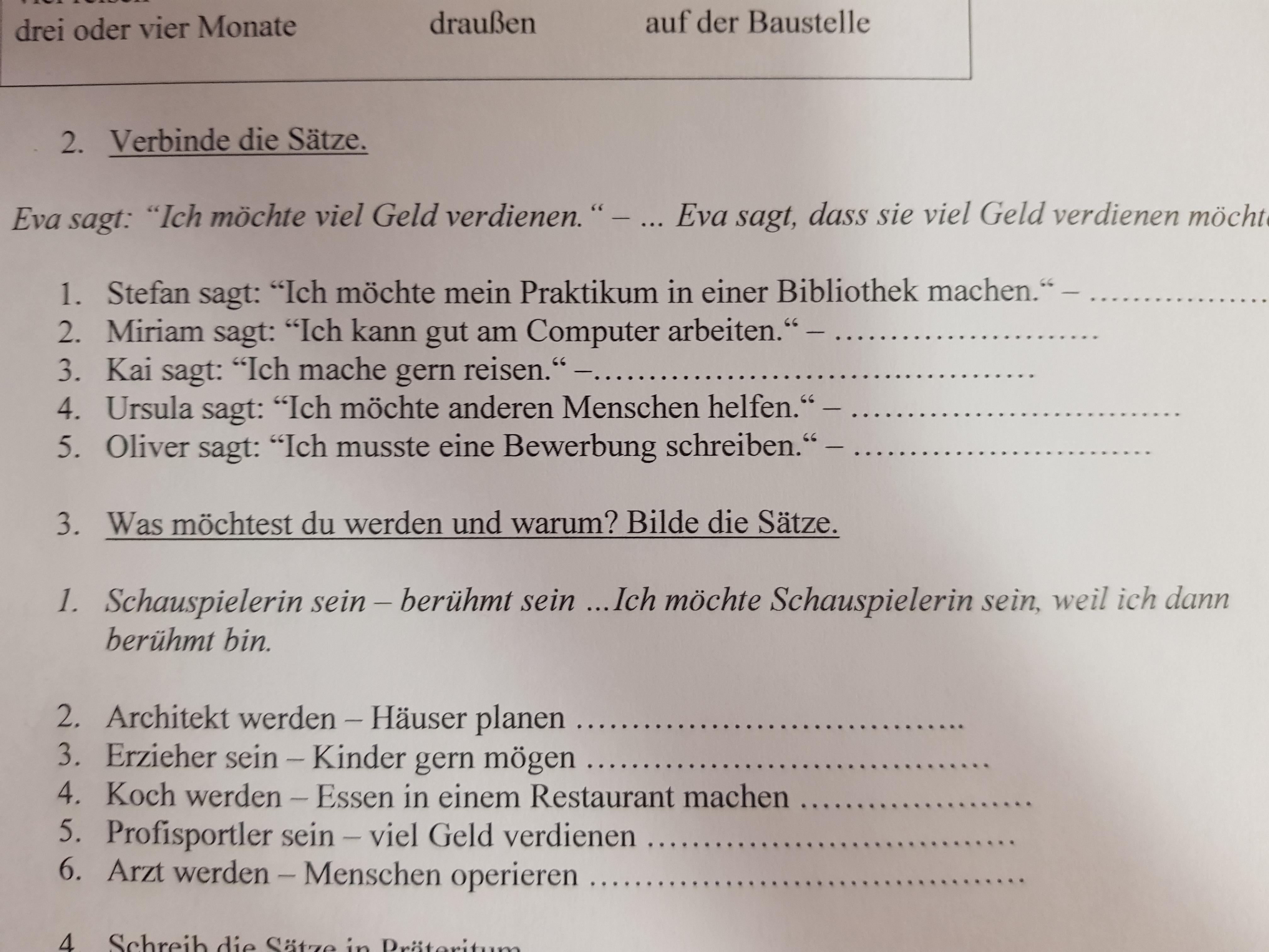 2. Ich möchte Architekt werden, weil ich dann Häuser plane.