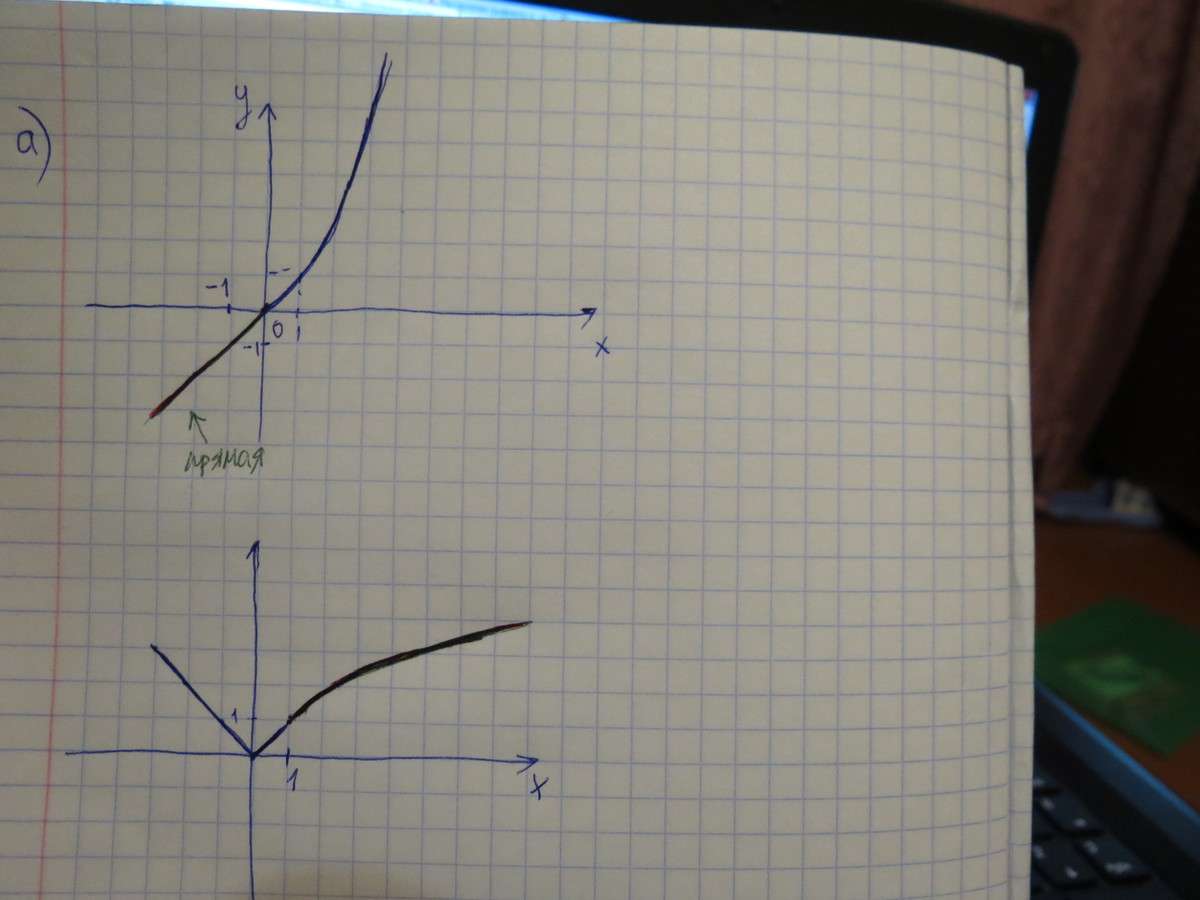 под а) при х от минус бесконечности до 0 идет прямая, при х от нуля до бесконечности - что-то нападобии ветки параболы