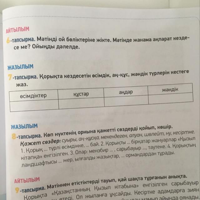 Өсімдіктер-қалқан асаймұса,кәдімгі өрік,көктем жанаргүлі,қызыл қайың,кәдімгі емен,талас қайың.