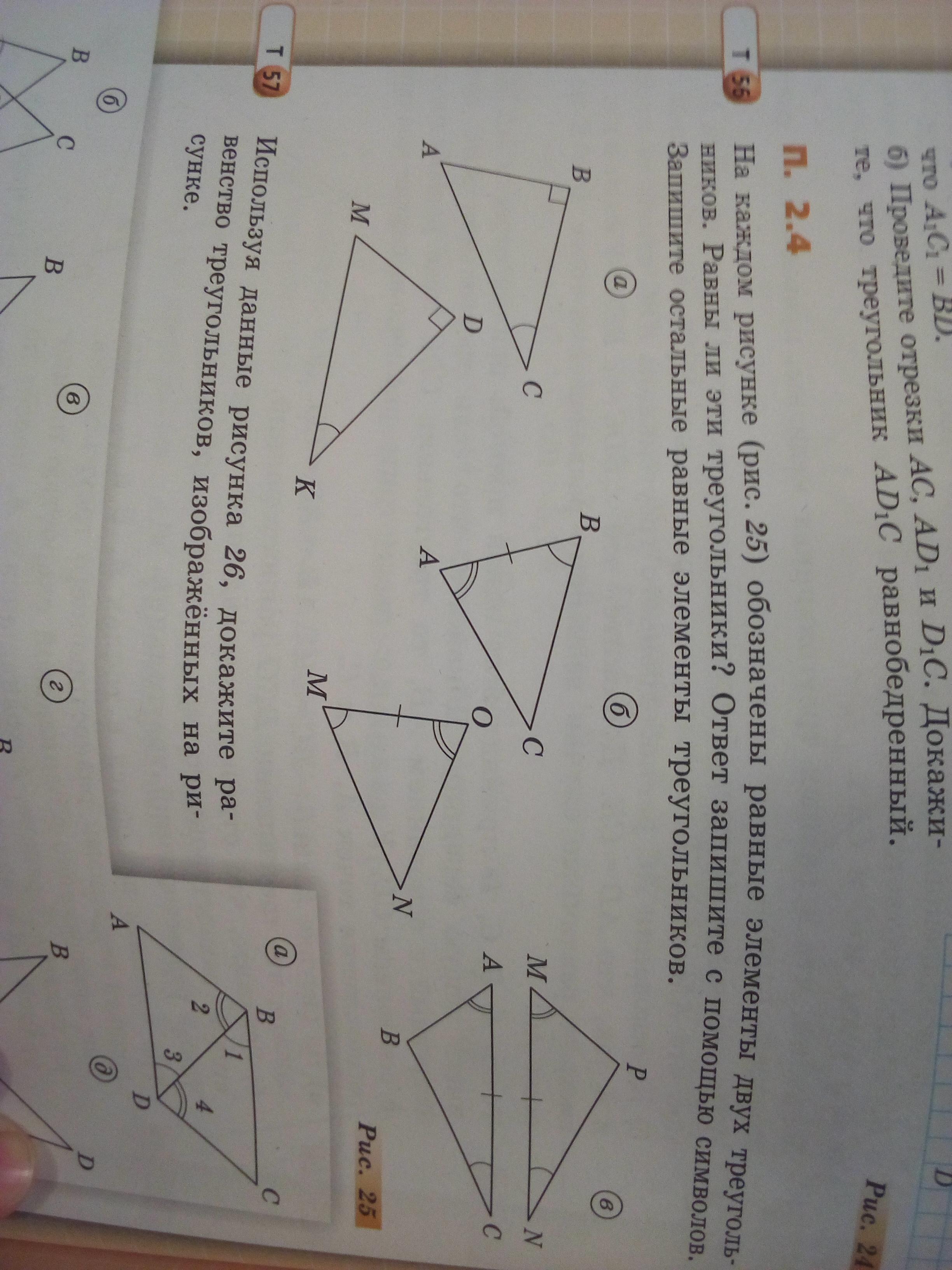 б) Треугольники равны по второму признаку (по стороне и двум прилежащим углам)