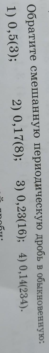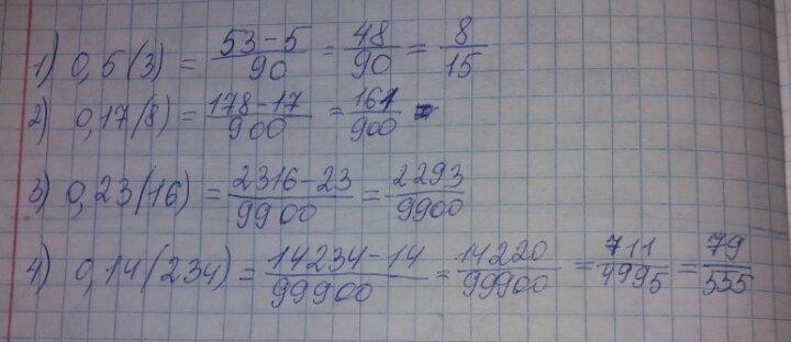 Для того, чтобы перевести смешанную периодическую дробь в обыкновенную, в первую очередь необходимо обратить внимание на целую часть. В Ваших примерах целая часть равна 0, поэтому после знака равно сразу же записываем дробную черту.