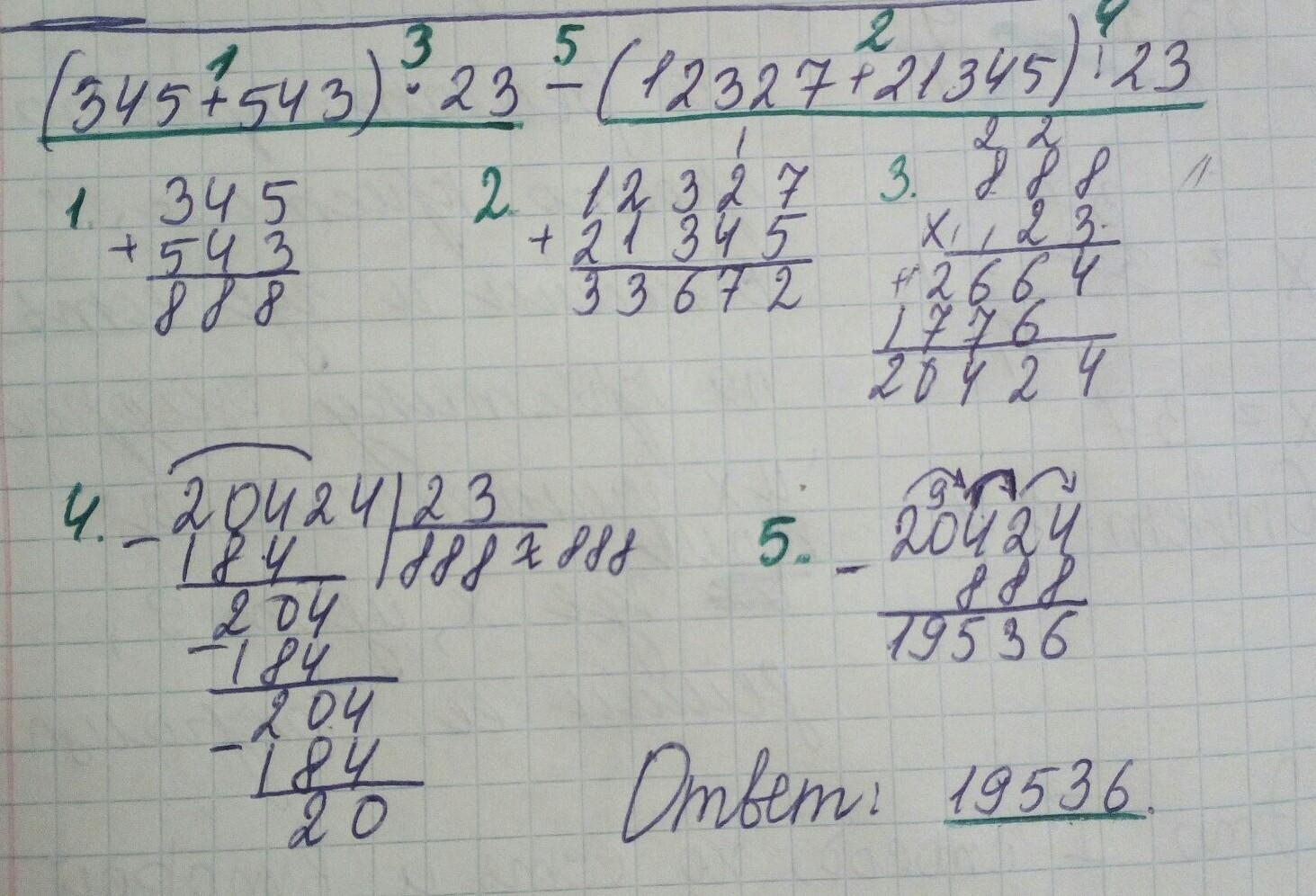 Состав алгоритм решения и вынесли значения выражения (345+543)×23-(12327+21345)÷23, (893709-432601-397690)×12+129001