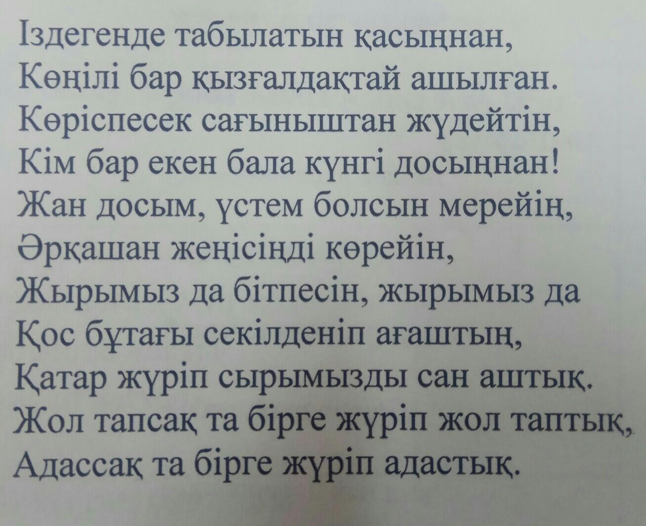 3. Қайда жүрсе досымен бірге жүретін, адасса бірге адасып, ағаштың қос бұтағындай болған, жан досымен бірге өткізген балалық шағын аңсап, еске алады.