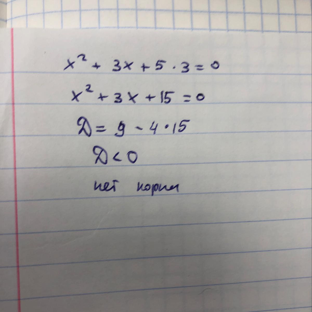 Нет корней, так как дискриминант отрицательный