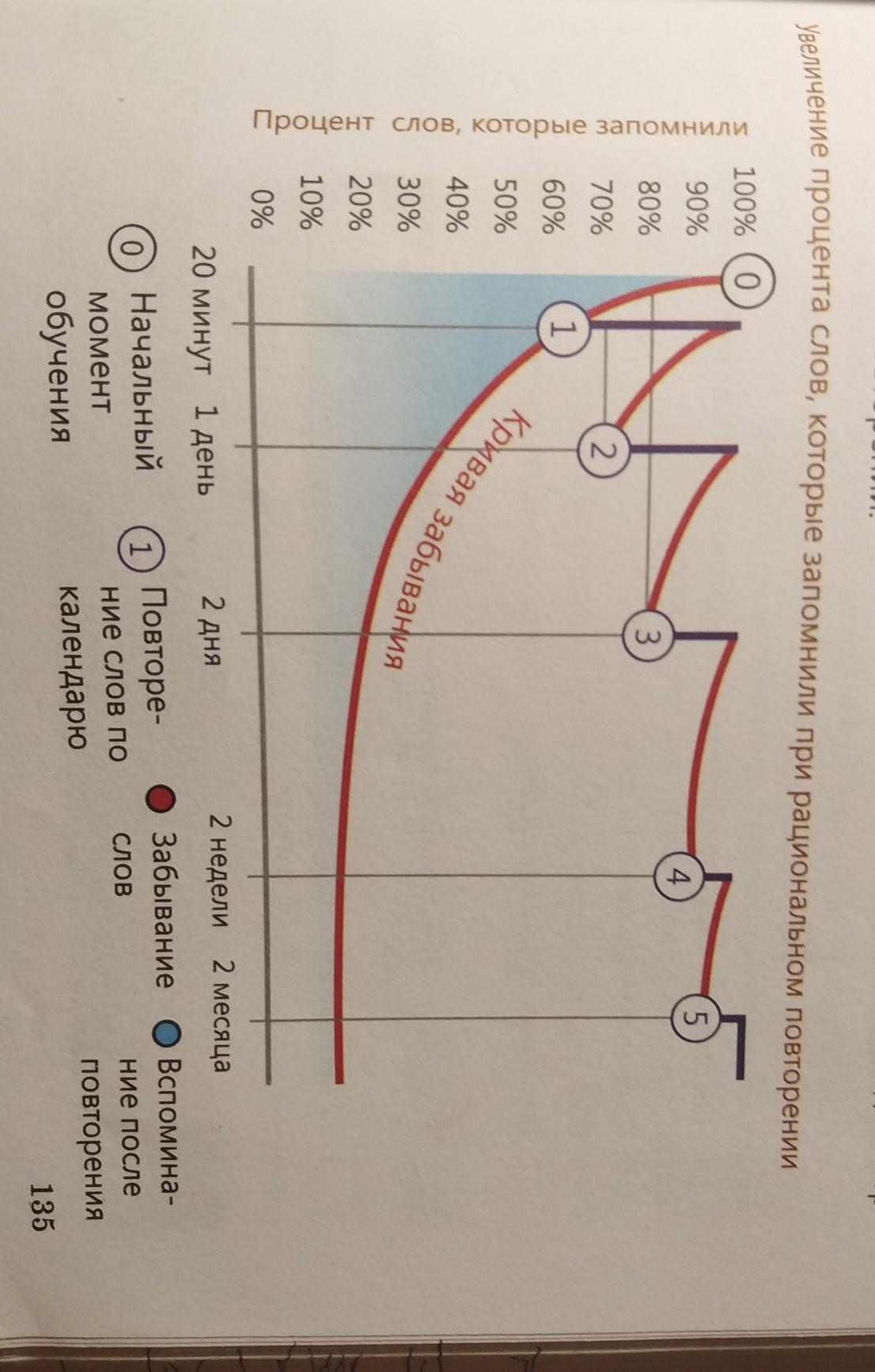 Ответ:В этой диаграмме начерчено увлечение процента слов, которые мы то есть школьники запомнили при рационально повторение. Например мы сперва учим, обучаем. А потом у нас в голове останется только чуть этого задания или же правил. А затем мы забываем всё это, у нас в голове нечего не останется. А дальше вспоминаем только тогда, когда мы его повторим.