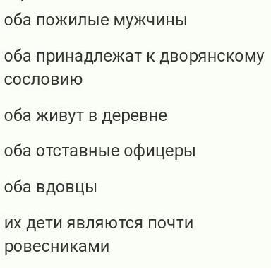 оба пожилые,оба принадлежат к дворянскому сословию оба живут в деревне оба отставные офицеры оба вдовцы их дети почти равесники