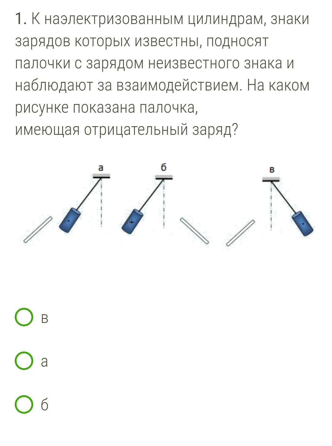разноименные заряды притягиваются, одноименные отталкиваются. если цилиндр с отрицательным зарядом отталкивается от палочки, то палочка имеет отрицательный заряд