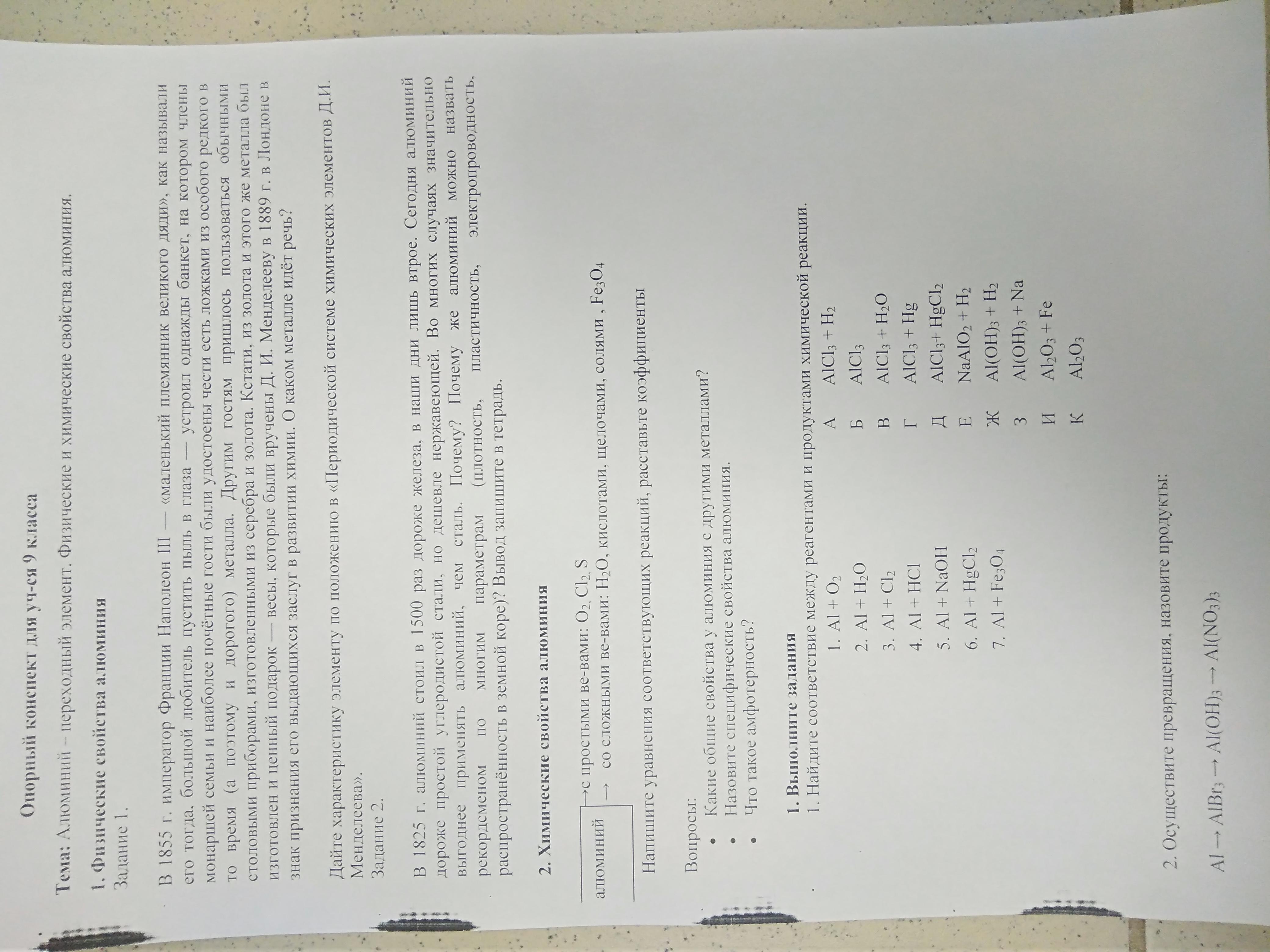 1) Название элемента –алюминий химический символ - AI, порядковый номер - № 13 , атомная масса Ar=27. Группа - 2, подгруппа- главная , 3-й период.