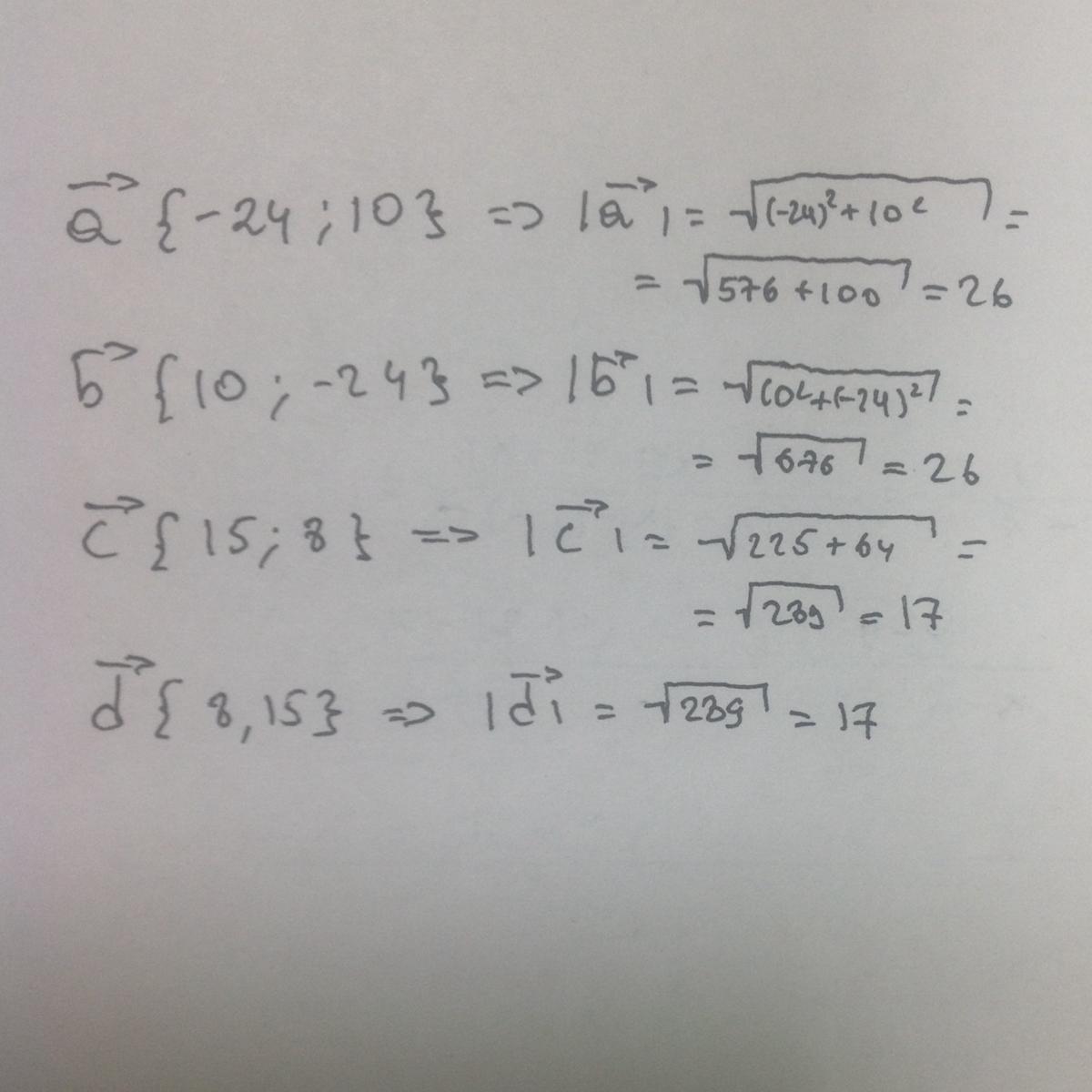 Пользовался формулой модуля вектора: корень из квадратов его координат