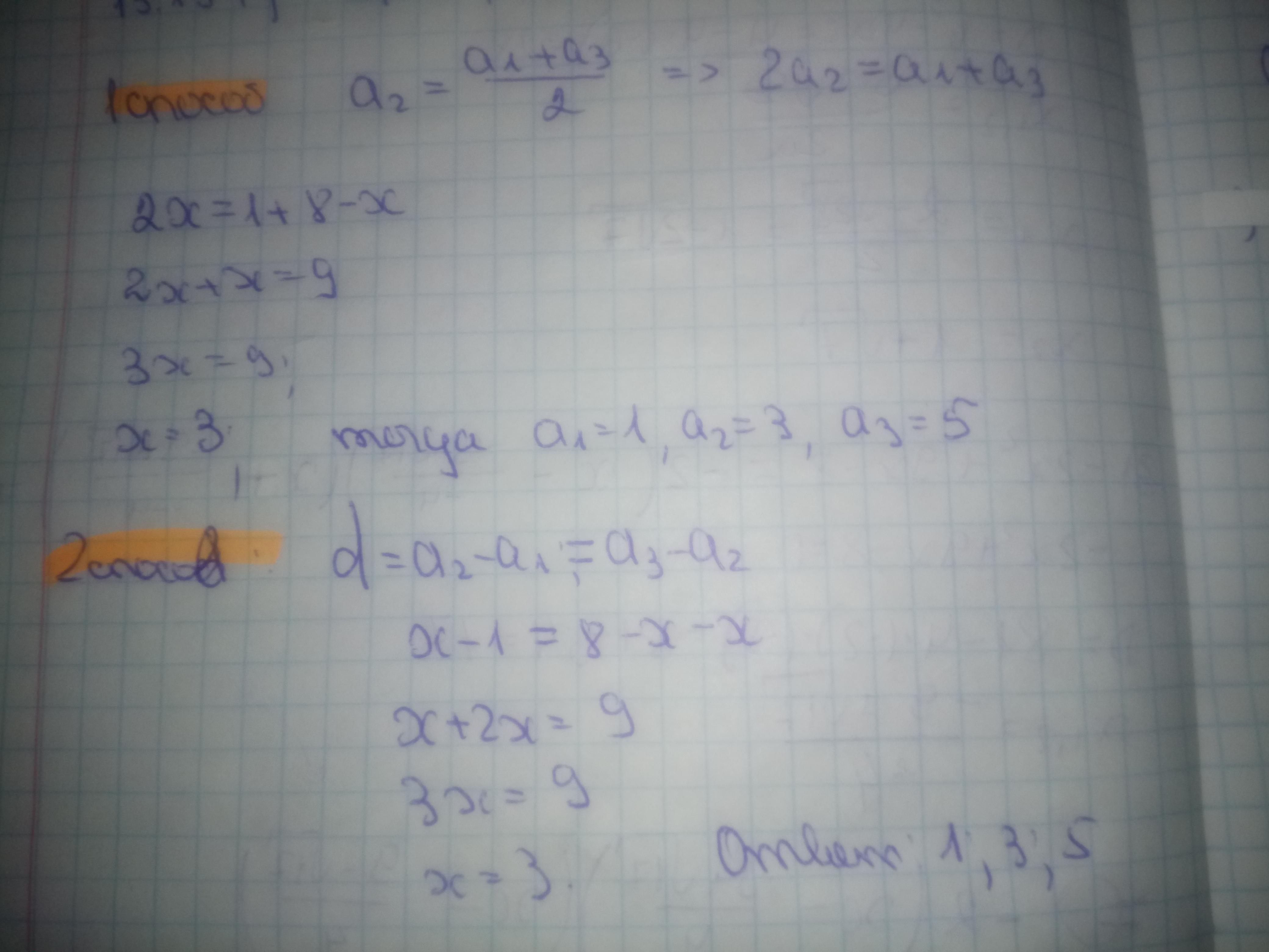 Ответ : при x = 3 : 1 ; 3 ; 5