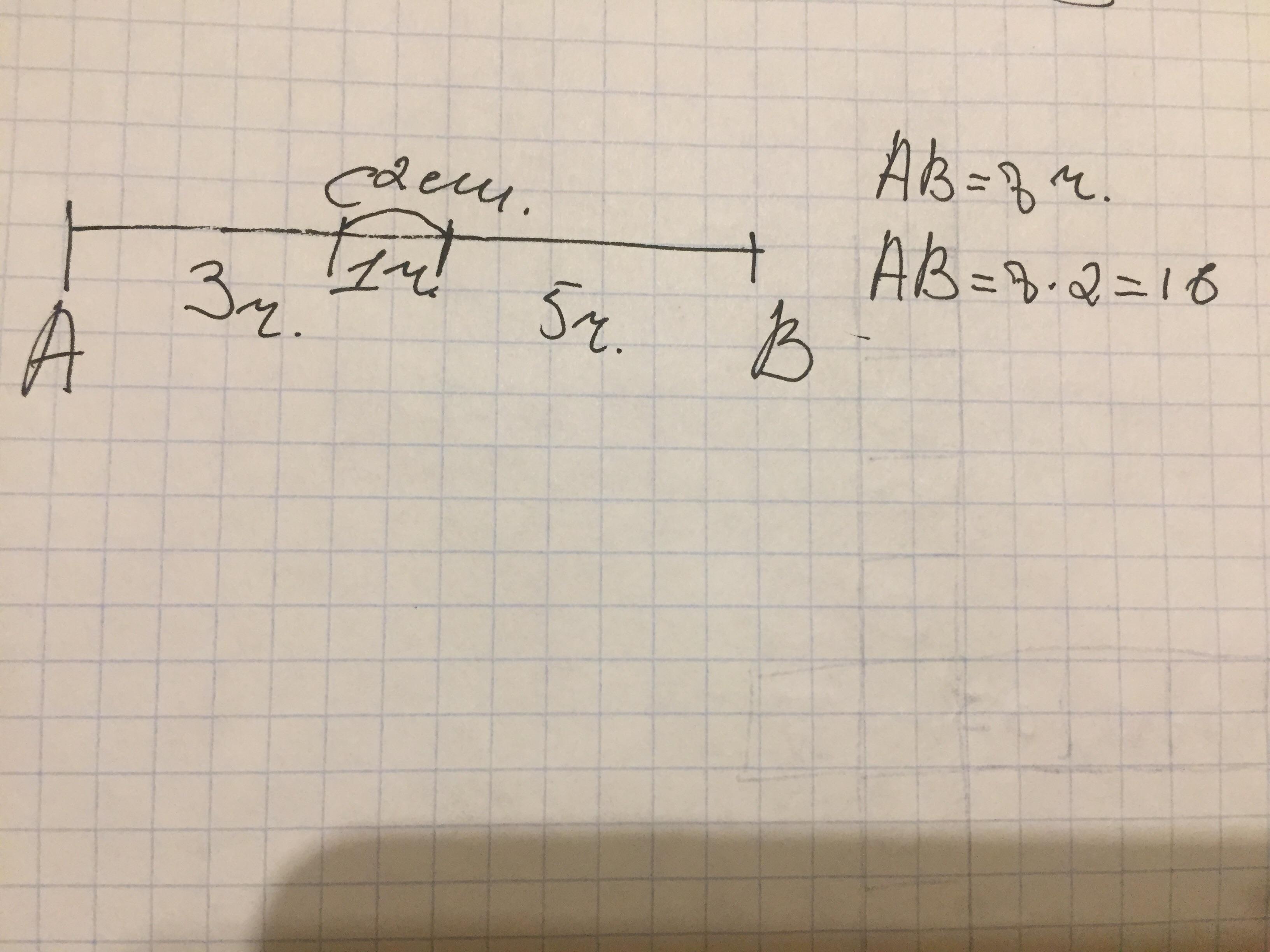 Объяснение: Всего 8 частей. Одна часть - 2 см. Значит 2*8=16